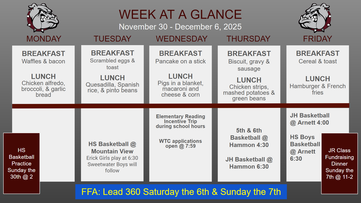 Week at a Glance November 23 - 29 & 30 - Dec 6